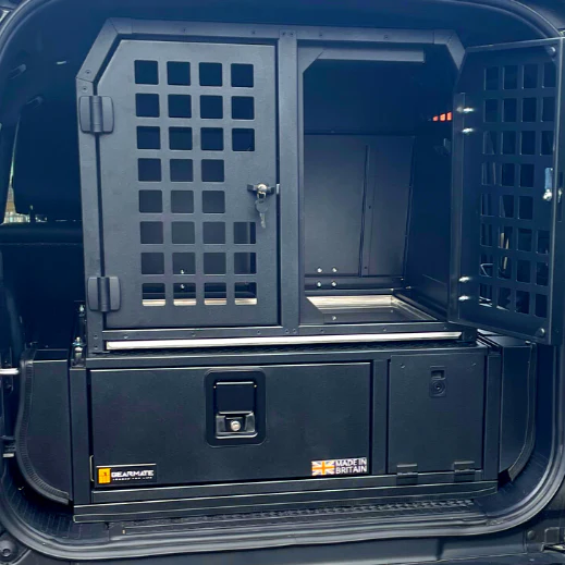 The perfect accessory to keep your animal secure and comfortable. With a lockable door and quick attachment and removal to the drawers. Ideal for transporting working dogs and household pets.
