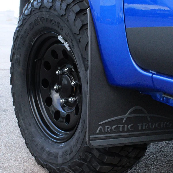 The matte black ATU panels to the lower doors and tailgate mark the vehicle as a special Arctic Trucks variant, while offering additional protection to the bodywork. Vehicle protection is further enhanced with the addition of enlarged Arctic Trucks front and rear mud guards.